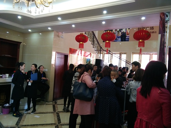 4月1日上午8時許,雖然還不到開盤時間,“徽鹽·錦繡公館”項目售樓中心已是人山人海,不少人在門口排隊領號,更多購房者已在等候區(qū)等待開盤選房。