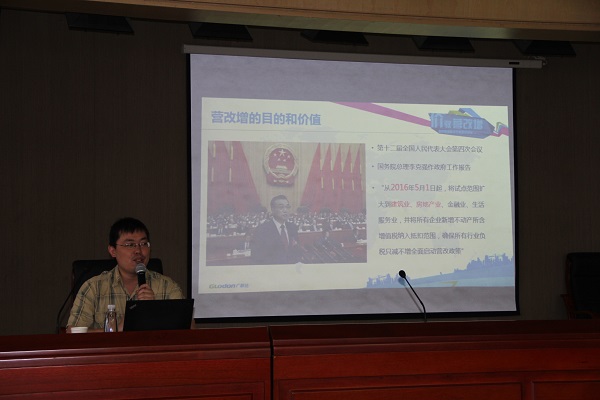 本次培訓(xùn)的主題是“建筑行業(yè)‘營(yíng)改增’的應(yīng)對(duì)及挑戰(zhàn)”,邀請(qǐng)的是廣聯(lián)達(dá)軟件的高級(jí)培訓(xùn)講師孫老師。 培訓(xùn)期間,孫老師對(duì)財(cái)政部、國(guó)家稅務(wù)總局的《關(guān)于全面推開營(yíng)業(yè)稅改征增值稅試點(diǎn)的通知》(財(cái)稅〔2016〕36號(hào))文件進(jìn)行了全面的解讀,闡述了兩類身份、兩種計(jì)稅方法以及“三流合一”等“營(yíng)改增”后的新概念,并進(jìn)一步分析了“營(yíng)改增”后安徽省工程計(jì)價(jià)涉稅調(diào)整的有關(guān)情況。最后,他結(jié)合“營(yíng)改增”對(duì)工程造價(jià)的影響為企業(yè)提出了應(yīng)對(duì)的具體建議。