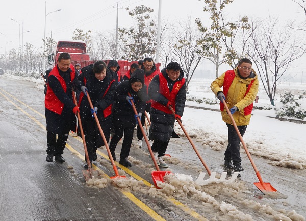 近日,受強冷空氣影響,霍邱縣迎來了連續(xù)雨雪天氣,縣城道路出現(xiàn)積雪、結(jié)冰現(xiàn)象,給人民群眾出行帶來了安全隱患。2月4日,霍邱項目黨支部積極響應(yīng)屬地新店鎮(zhèn)黨委號召,組織黨員志愿者開展了“掃雪除冰暖人心 白雪更映志愿紅”黨員志愿服務(wù)活動,采取以機械作業(yè)為主,人工清雪為輔的方式,開展掃雪除冰、疏通道路等工作,全力保障人民群眾安全出行,以實際行動彰顯國企擔(dān)當(dāng)。