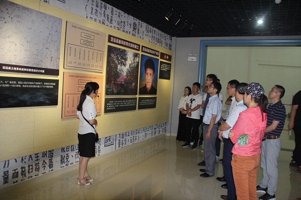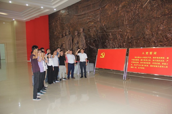 藕塘為抗日戰(zhàn)爭時期津浦路西革命根據地中心,素有“小莫斯科”之譽稱,是我省首批愛國主義教育基地。在莊嚴肅穆的烈士陵園,全體人員首先在講解員的帶領下依次參觀了藕塘紀念館的各個展區(qū),觀看珍貴的文物、文獻、照片等資料,回顧黨的光輝歷程,追尋英雄足跡,緬懷先烈事跡,再次被劉少奇、葉挺、羅炳輝等老一輩無產階級革命家的壯烈事跡所感動。隨后來到紀念館大廳前,全體黨員面對鮮紅的黨旗,重溫入黨誓詞,進一步牢固“不忘初心、牢記使命”的政治信念。